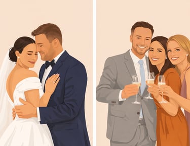 Custom illustrated portraits created from your photos – perfect for weddings, couples and meaningful keepsakes.